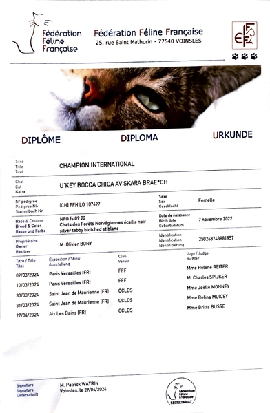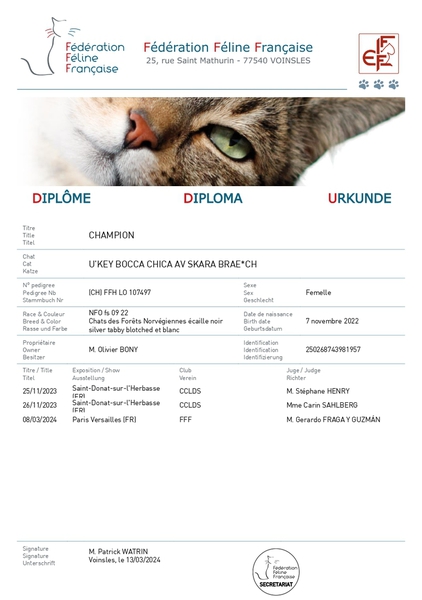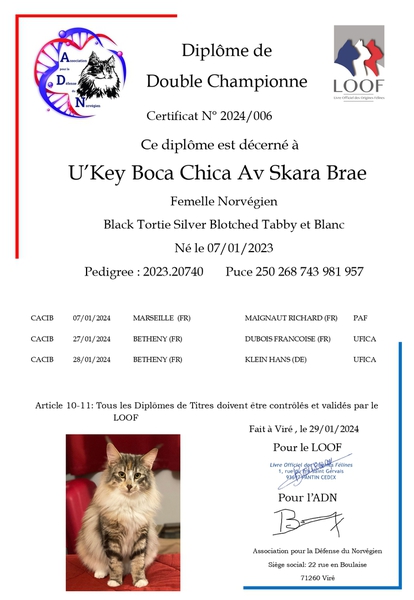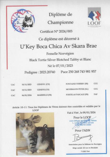Diplômes: Championne LOOF