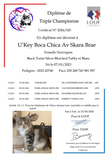 Titre: Triple championne LOOF